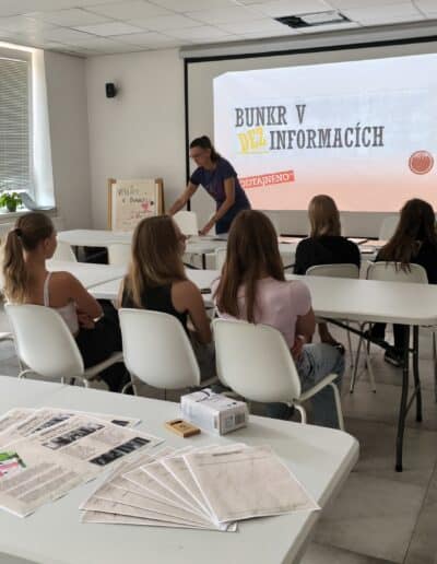 Žáci se zábavným způsobem seznámí s principy kritického posuzování a ověřování informací. V praktické části si vyzkouší tvorbu vlastního mediálního výstupu. Součástí programu je i prohlídka bunkru.